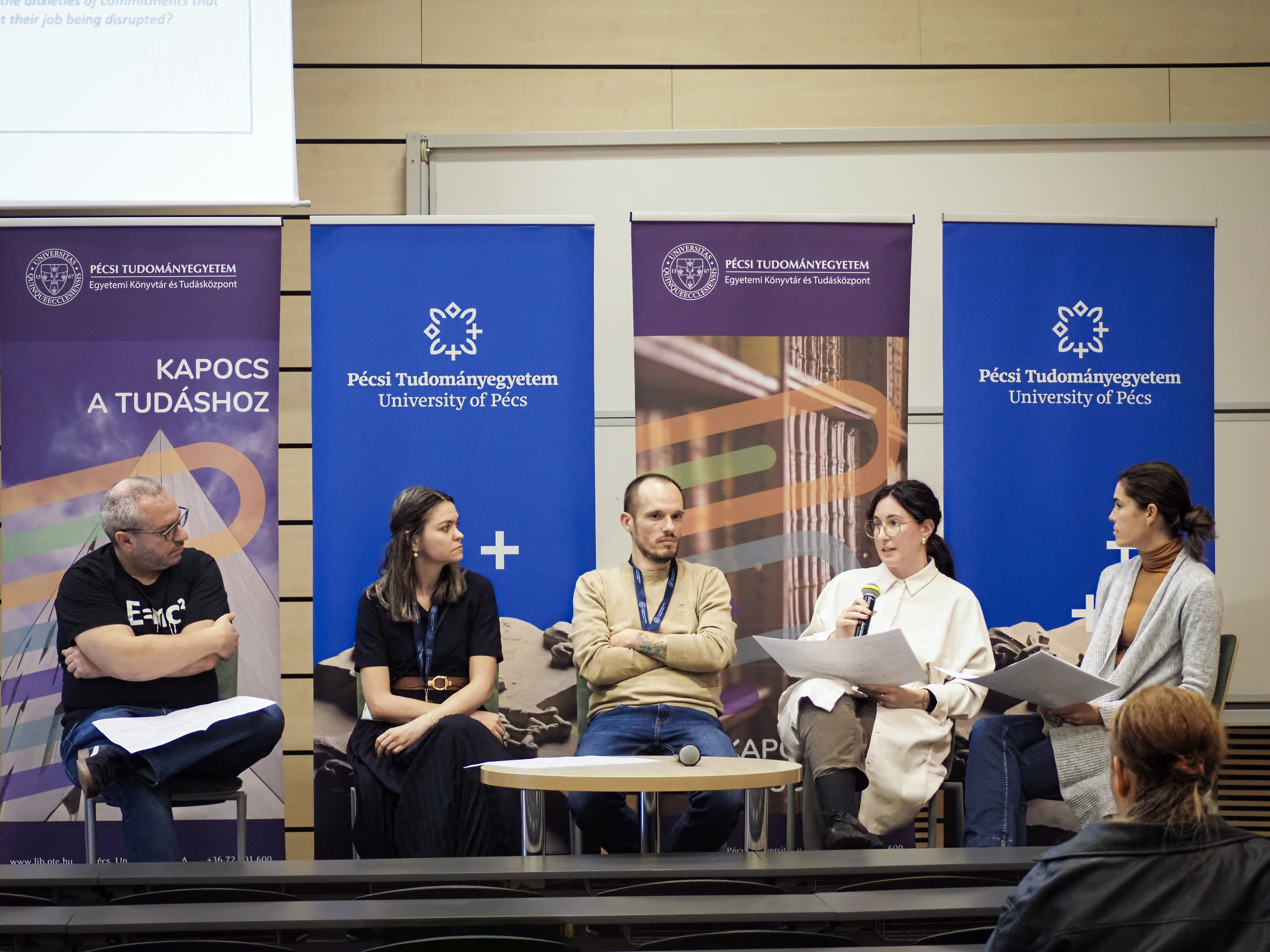 A Fiatal Kutatók Akadémiája, a PTE Egyetemi Könyvtár és Tudásközpont és a PTE Doktorandusz Önkormányzat által közösen szervezett rendezvényen a résztvevők az előadások után egy kerekasztal-beszélgetésen, délután pedig egy workshopon vitathatták meg a tudományos teljesítmény értékelésének kihívásait, valamint a mesterséges intelligencia és az open science szerepét a kutatómunkában. A konferencia nemcsak szakmai eszmecserét, hanem valódi közösségi élményt is nyújtott.